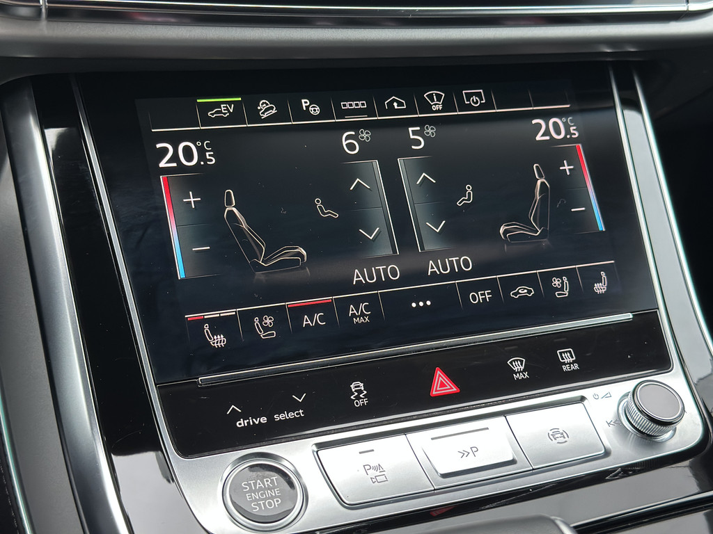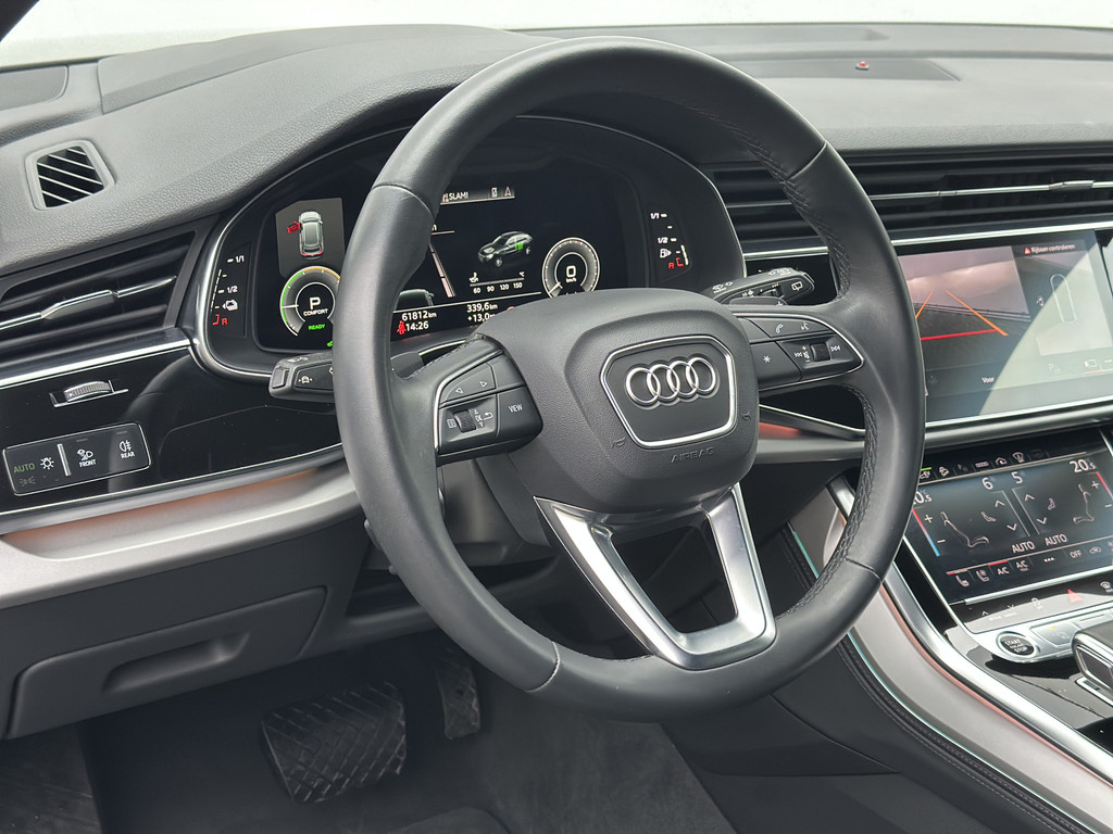 De Audi Q8 55 TFSI e Hybride Quattro Pro Line Plus straalt luxe en power uit met zijn 381 pk sterke plug-in hybride aandrijving. Het zwarte interieur met stoelverwarming, zorgt voor ultiem comfort. Dankzij de 360-camera, sensoren en adaptive cruise control rijdt én manoeuvreert hij moeiteloos. Het Bang & Olufsen geluidssysteem maakt elke rit een premium ervaring. Met een trekhaak van 3.500 kg is deze SUV perfect voor caravan, boot of zware aanhanger. Het head-up display, keyless entry en automatische klimaatcontrole geven extra gemak en veiligheid. Kortom: deze Audi Q8 biedt luxe, kracht en praktische veelzijdigheid in één indrukwekkend pakket.